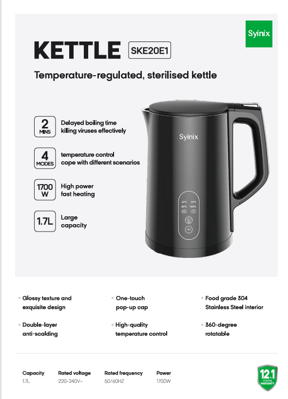 SYINIX 1.5L DOUBLE HOUSING KETTLE