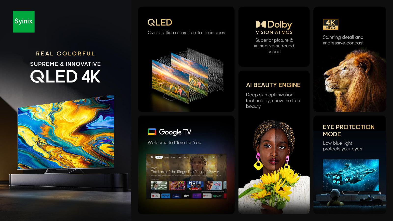 SYINIX 65'' FRAMELESS QLED 4K GOOGLE TV